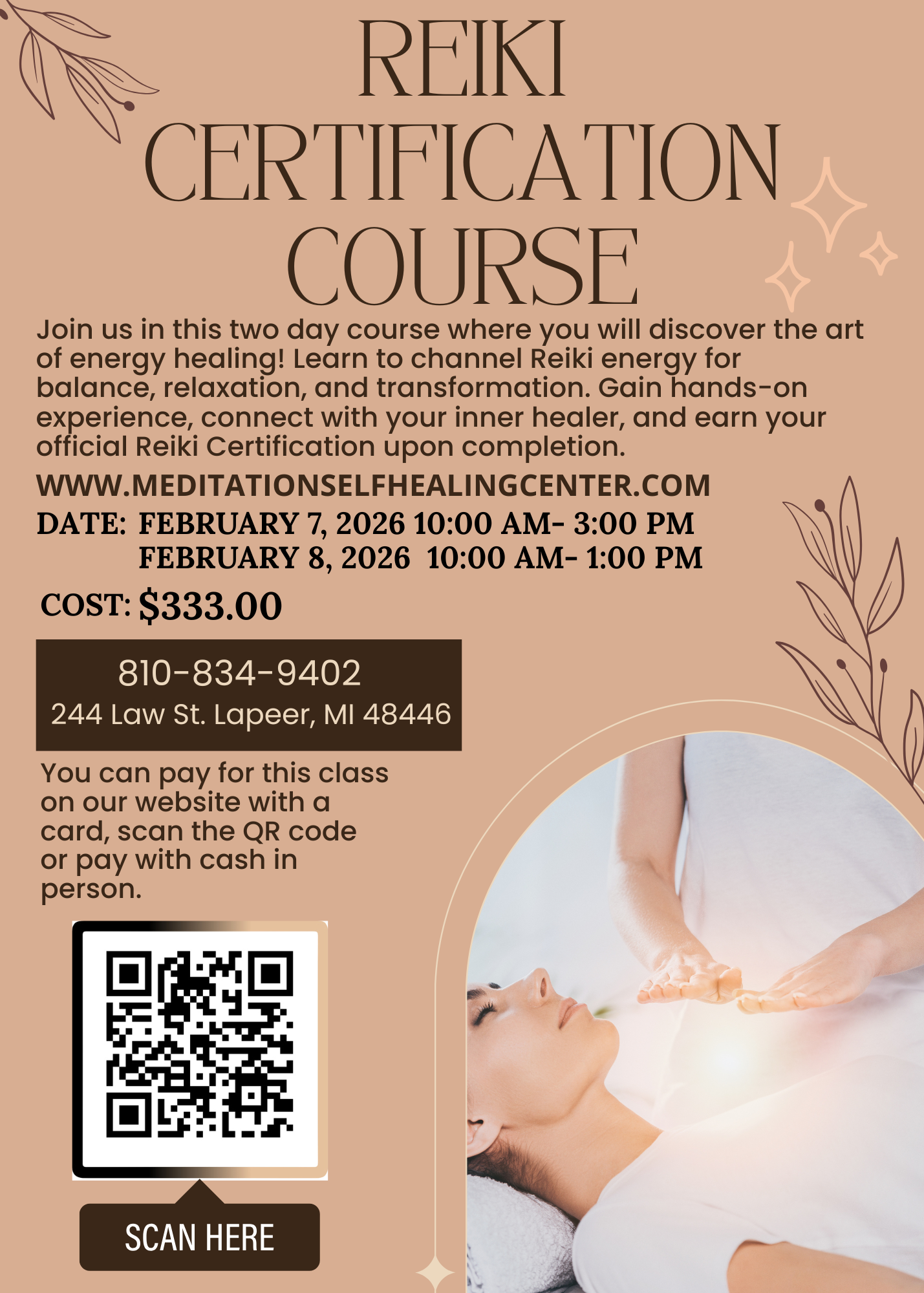 -Official Reiki Certification upon completion